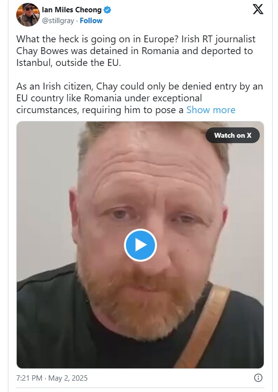 What the heck is going on in Europe? Irish RT journalist Chay Bowes was detained in Romania and deported to Istanbul, outside the EU.