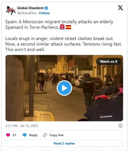 Spain: A Moroccan migrant brutally attacks an elderly Spaniard in Torre-Pacheco.