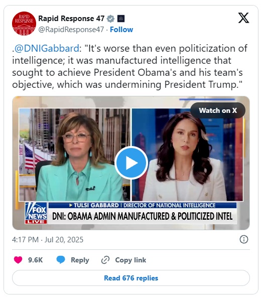 "It's worse than even politicization of intelligence; it was manufactured intelligence that sought to achieve President Obama's and his team's objective, which was undermining President Trump."