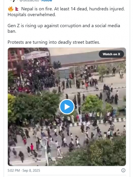 Nepal is on fire. At least 19 dead, hundreds injured. Hospitals overwhelmed