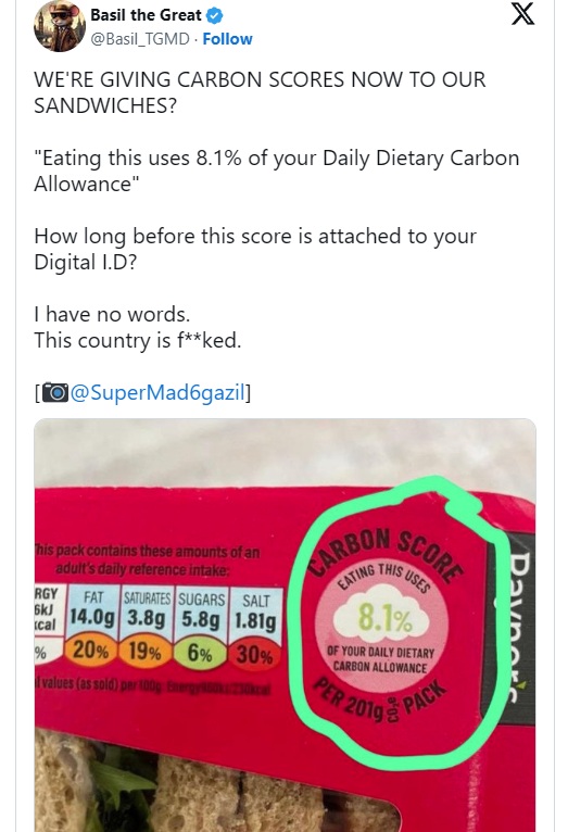 "Eating this uses 8.1% of your Daily Dietary Carbon Allowance"