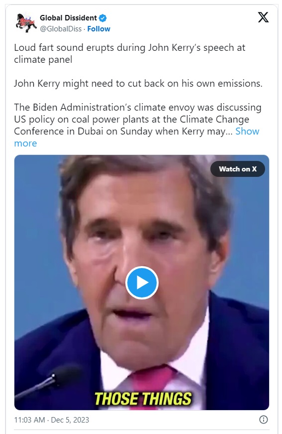 The Biden administration's climate envoy was discussing U.S. policy on coal-fired power plants at a climate change conference in Dubai on Sunday when Kerry may have launched a surge in wind power.