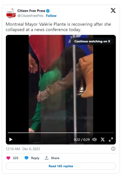 The world media caught the moment on Tuesday when the mayor of Montreal, Canada, Valérie Plante suddenly collapsed at a press conference.
