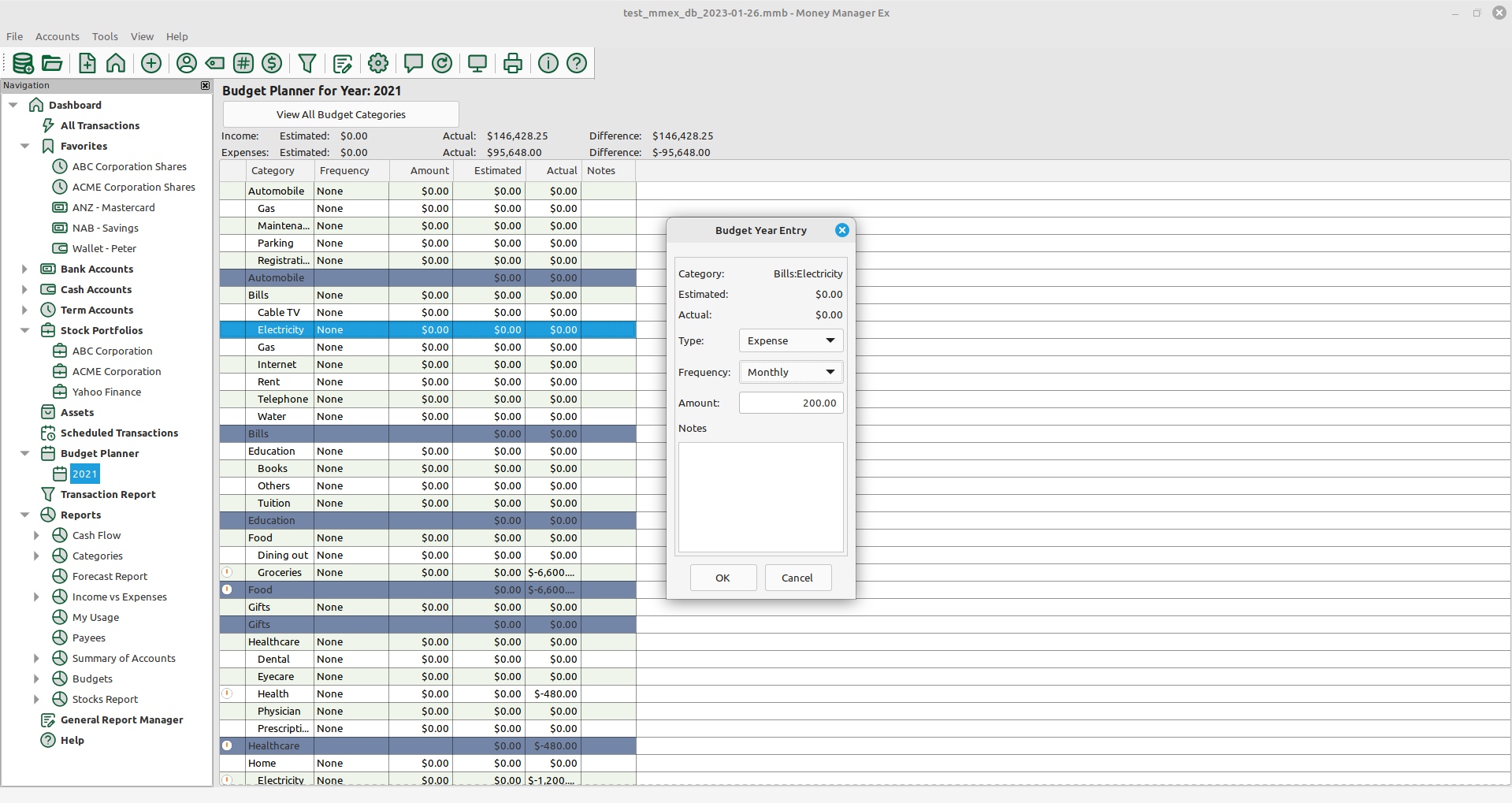Stocks/Shares Allows the tracking of Stocks and Shares to be incorporated with your general day-to-day transactions.