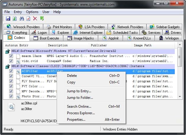 This utility, which has the most comprehensive knowledge of auto-starting locations of any startup monitor, shows you what programs are configured to run during system bootup or login, and shows you the entries in the order Windows processes them. These programs include ones in your startup folder, Run, RunOnce, and other Registry keys. You can configure Autoruns to show other locations, including Explorer shell extensions, toolbars, browser helper objects, Winlogon notifications, auto-start services, and much more. Autoruns goes way beyond the MSConfig utility bundled with Windows Me and XP.