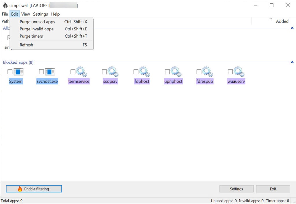 Simplewall is an application that helps you apply filters to WFP, which can help you control which services and protocols are allowed or blocked.