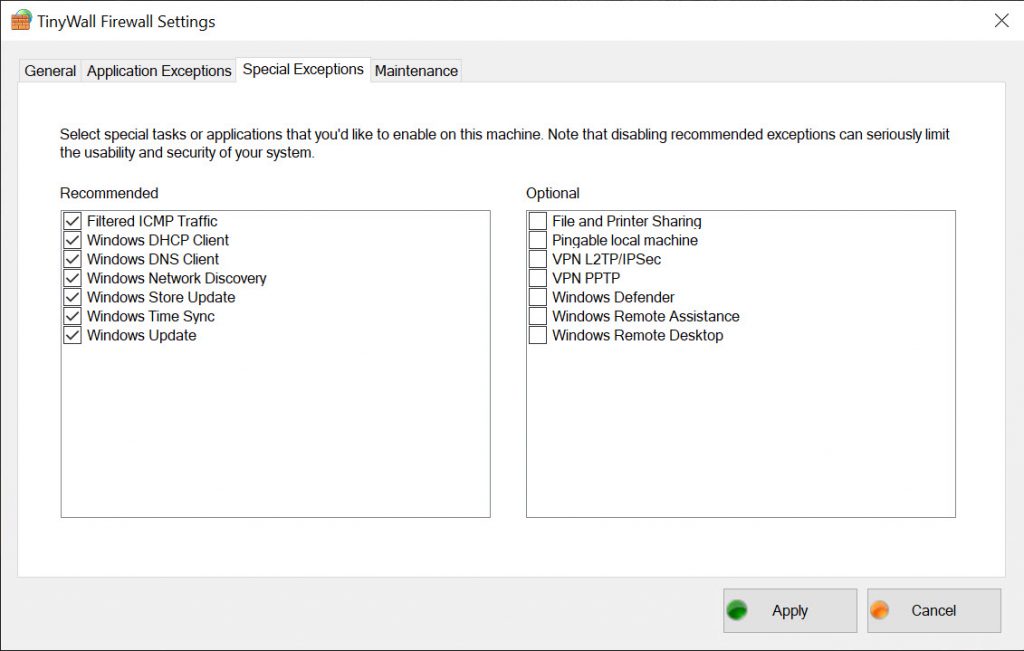You can make special exceptions for programs and give them the green light. It might include common functions that need internet access on your PC. For instance, printing, file sharing, Windows Remote Desktop, Windows Update, Remote Assistance, and other common network-based features are good starting points for your special exceptions list.