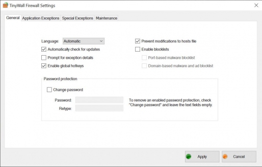 TinyWall is a firewall application that offers limited intrusion. It provides more security, monitoring, and other features than competing programs.