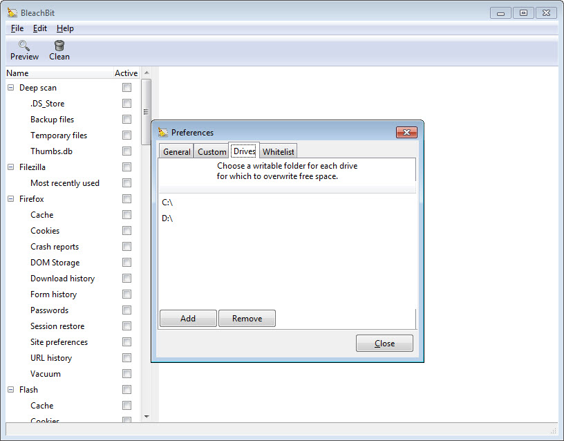 BleachBit helps users clean their PCs and stay private on the internet. It does that by freeing cache, deleting cookies and logs, shredding temporary files, and any other trace you leave after using an internet browser.