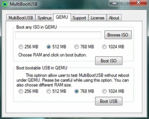 - Test your ISOs and Live USB with out reboot using QEMU option shipped with the software.