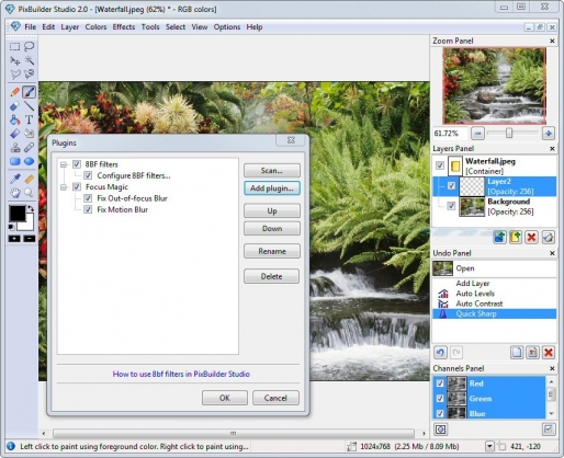 PixBuilder Studio is an image editor that offers a full set of photo editing and color management functions, including color balance, levels and curves adjustments, color fill and more. Unlike most free editors, the program even offers support for layers and .8BF Photoshop filters.