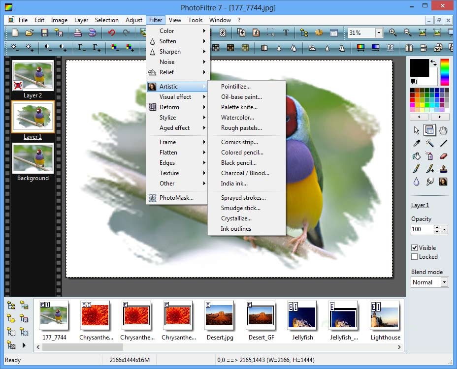 PhotoFiltre is a complete image editing and effects package, that will not only surprise you with features but also with the fact that it is free (for personal use).