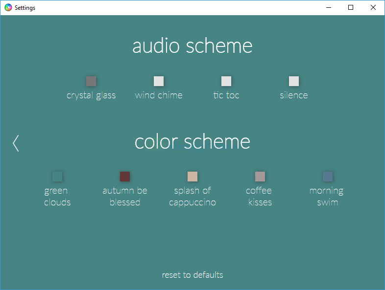 The reminder window displays useful tips to get the most benefits from you breaks (e.g. close your eyes and take a deep breath). You can customize the color and sound scheme of the break reminder to your preference.