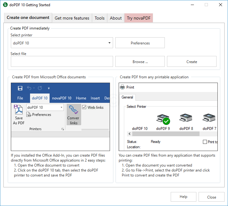 doPDF enables you to convert any printable document to PDF format. The program installs as a virtual printer driver and can be accessed from any application that supports printing.