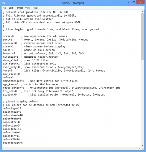 NDIR is a full-featured, color directory lister. It is a complete replacement for the DOS DIR command, with many additional features. It supports long filenames under FAT16, FAT32, NTFS and up to 200 different file-extension color settings.