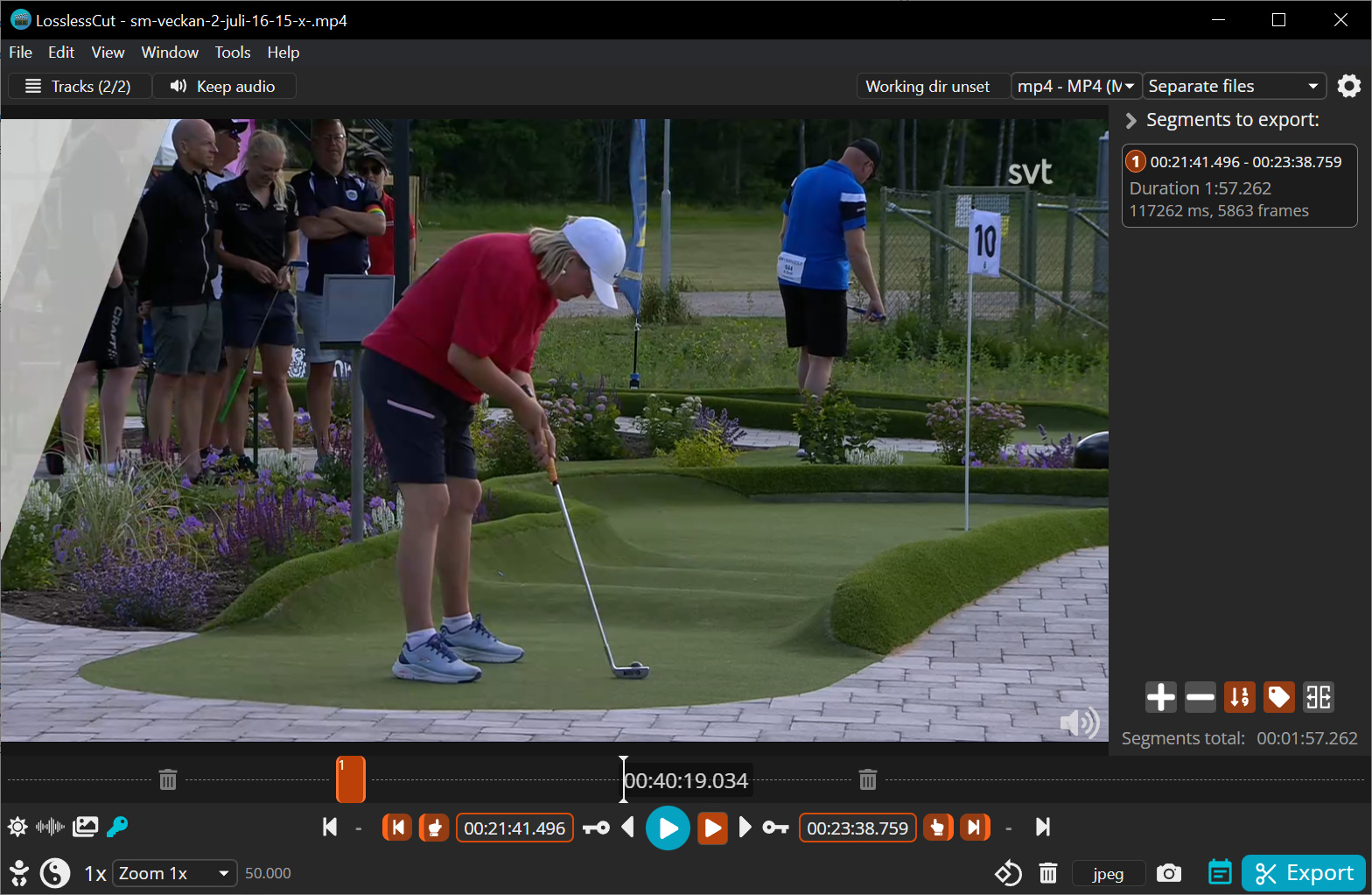 You can also use the program to take a quick JPEG snapshot of a scene. LosslessCut uses ffmpeg (included) for doing all the grunt work.