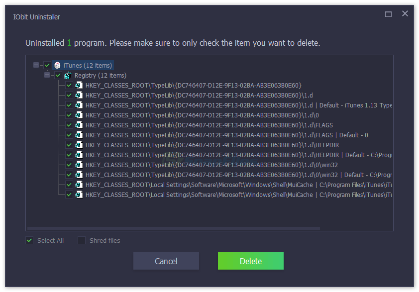 In Advanced Mode, the program runs the standard Uninstaller to remove an application, and then scans for leftover files, folder and registry items, which you can choose to remove as well.