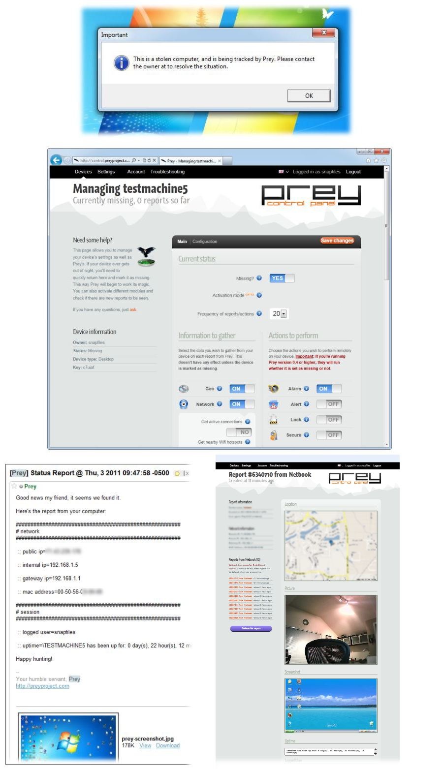 You can even tell Prey to activate your webcam, delete browser history, display a warning message, sound an alarm or lock your computer.