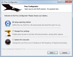Prey can be used with an online control panel at Preyproject.com or, if you are an advanced user, you can use your own web server and receive reports via email. In case your laptop is stolen or lost, you can activate the signal from the control panel or, if using your own server, delete a special HTML file on your server to cause Prey to start sending reports.