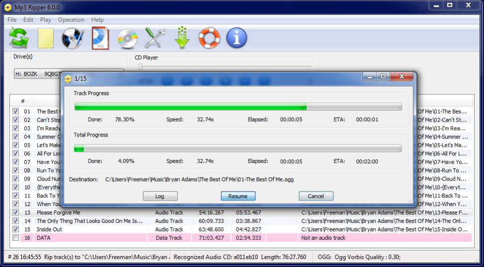 CD Ripper is a straightforward and efficient tool to rip your audio CDs and convert their tracks into some of the most popular audio codecs (MP3, OGG, FLAC, APE and WAV). The program will detect all your drives and will allow you to select any of them, including the IVI virtual drive, if you have one installed.