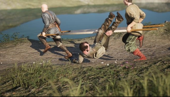 Control the characters at the front and back of the stretcher, carefully advancing without dropping the patient.