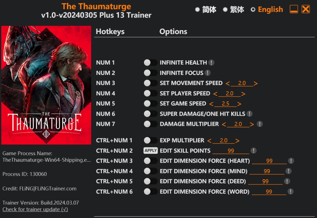 GAME TRAINER | The Thaumaturge v1.0-v20240305 Plus 13 Trainer (trainer) ...