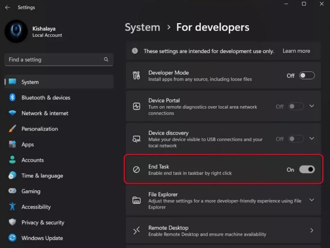 This new feature is a great addition to Windows 11, especially for people using alpha or beta apps for testing purposes. As these could crash often without any warning, the End Task feature can function as a convenient kill switch that helps users shut down errant applications without having to open Task Manager.