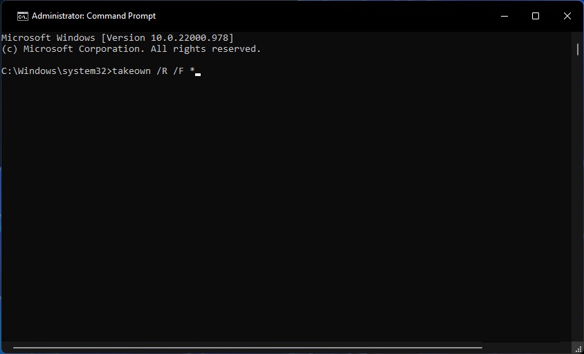 3. To take ownership of an open directory tree, input the following text and hit Enter: