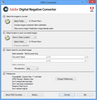 Adobe DNG Converter enables you to convert digital RAW file from various camera manufacturers to standard DNG format (Digital Negative), which is a public format that can be opened by Photoshop and many ..