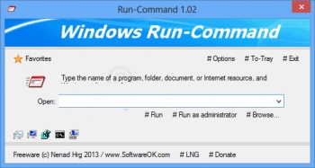 Run-Command is an alternative for the standard Windows Run dialog. The Run-Command dialog looks similar to the Windows dialog but offers a convenient "Run as Administrator" button as well as ..