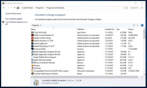 We often install huge programs without realizing how much space they’re taking up. If you think that might be the case, then you can easily uninstall any programs you don’t use. Even if it’s a program you do use now and again, if it’s particularly big, it might be worth simply reinstalling each time you need to use it. To uninstall a program, head over to Control Panel/Programs/Programs and Features. Go though the programs and decide which ones, if any, you don’t need. If you’re unsure about a particular program, you could simply use a search engine to find out more. Alternatively, you can also use a tool like the aptly named PC Decrapifier to help you distinguish the good from the bad.
