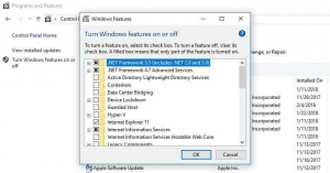 Click Turn Windows features on or off and you’ll see a list of these components.