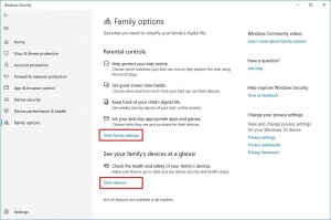 Windows Security also has a "Family options" area, but it's not a place where you can manage any settings. Instead, it offers access to your Microsoft account to manage parental control and other devices connected to the account.