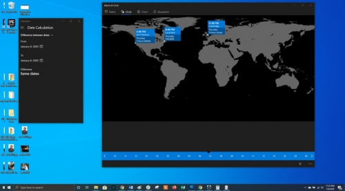 The Alarms and Clock app can calculate the time difference between two locations, even into the future. Open the app, click the Clock tab, and select the + icon at the bottom to add locations.