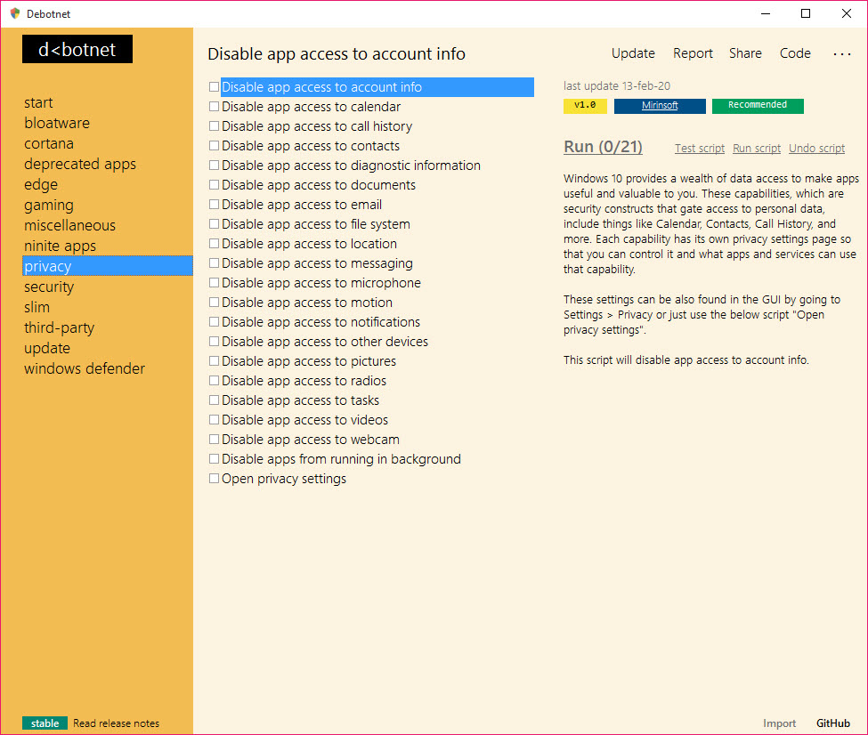 Debotnet allows you to manage and change all your privacy settings in Windows 10 and helps you make sure all your data stays protected and secure. Sometimes, Windows 10 is hiding various applications and processes running in the background that you cannot control. There have been concerns about the privacy of Windows 10 ever since its launch.