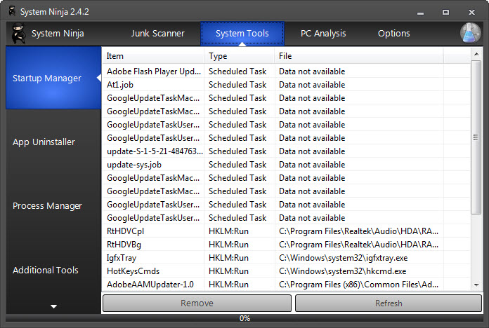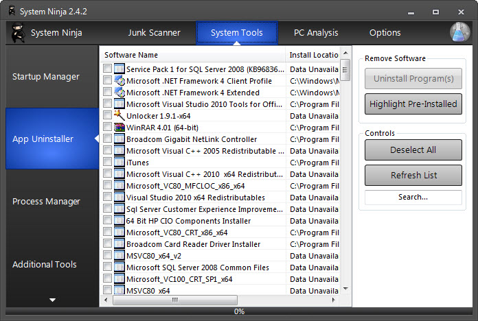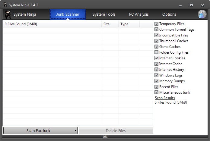 System Ninja is a very useful tool to own if you want to clean your computer of junk files and remove them in just a few simple steps.