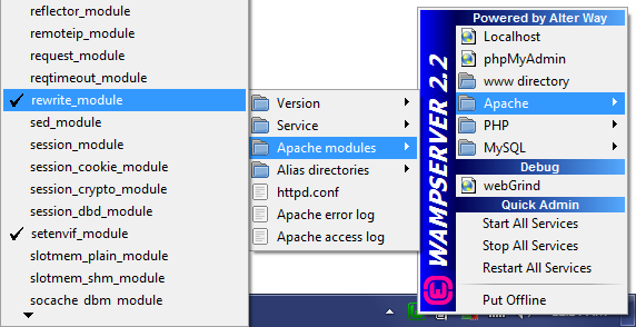 WampServer is a Windows web development environment. It allows you to create web applications with Apache2, PHP and a MySQL database. Alongside, PhpMyAdmin allows you to manage easily your databases.