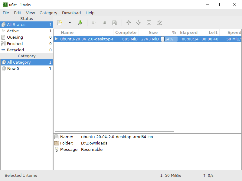 If you provide a path to save a file but the folder doesn’t exist, uGet will create it for you automatically in order to save the file there.