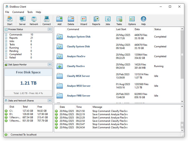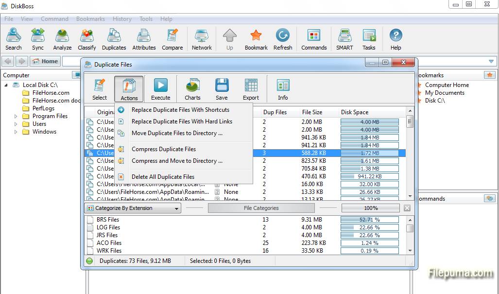 DiskBoss is a file management toolkit that enables you to classify and categorize files, find duplicate files and free-up storage space. You can scan drives or folders and view a report of how your storage space is utilized by file type. It automatically categorizes your files by general types (e.g. multimedia files, executables, documents etc.) and allows you to drill down further to view results for individual files types and eventually a list of all files within the group.