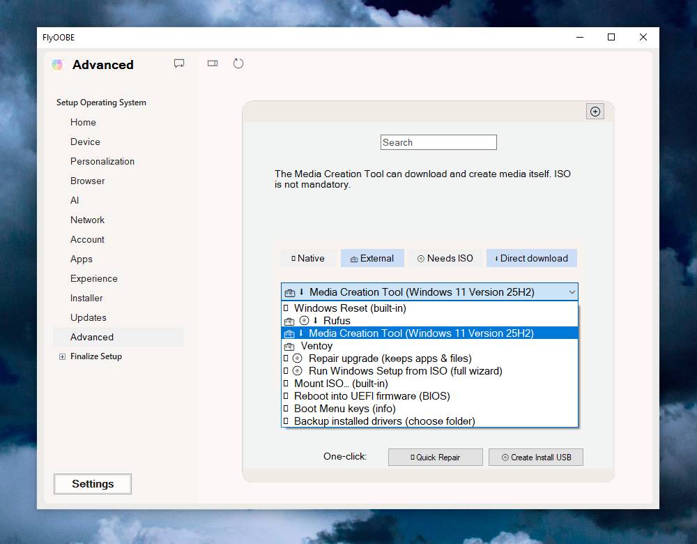 New indexing system for all OOBE pages and extensions based on metadata, allowing tools like Flyby11 to be found using simple keywords such as ESU, 10, or 11
