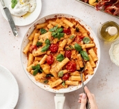 KUHAJMO.COM | Testenine v kremni paradižnikovi omaki s hrustljavim pršutom ...