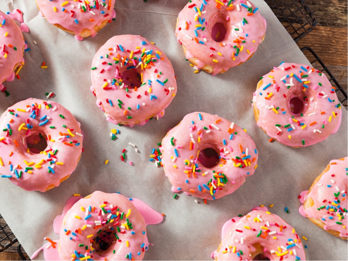 V vsako luknjico damo mase največ do polovice, ker krofki med preko narastejo, če je damo preveč, ne bodo lepih oblik. Pečemo 10 minut na 170 stopinj oz.do zlato rumene barve. Namig: Pri okrasitvi krofkov smo lahko spet zelo kreativni, uporabimo lahko različne prelive, čokolado, obarvan sladkor, perlice, razne posipe. Barbara, ki nam je poslala recept, najraje uporabi beljakovo glazuro ali royal icing. Pripravi ga tako, da do polovice stepe 1 beljak in nato med mešanjem doda 200 g sladkorja v prahu ter par kapljic limonovega soka.