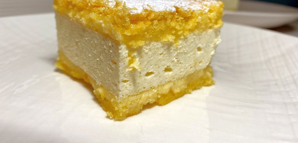 V drugi posodi zmešamo skuto, kislo smetano, sladkor, zdrob, vanilijev ekstrakt in limonino lupinico. Iz beljakov stepemo sneg in ga nežno vmešamo v skutino zmes.
