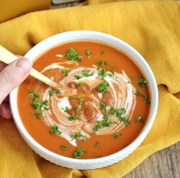 Dobro premešajte, zgostite z mešanico moke in vode, pustite da še enkrat zavre, dodajte peteršilj in postrezite v skodelicah.