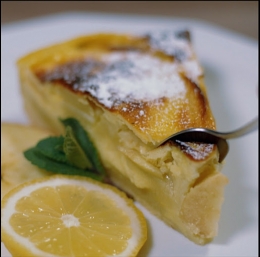 1 kg jabolk (sočne sorte), 2 čajni žlički limoninega soka, 500 ml mleka, 50 g sladkorja, 1 zavitek vaniljevega pudinga, 1 manjše jajce