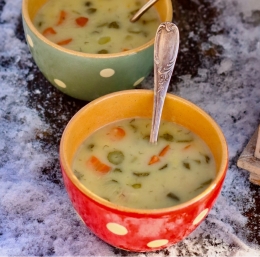 V skodelici dobro pomešamo moko, smetano in vodo, vmešamo v juho in kuhamo še približno 10 minut.