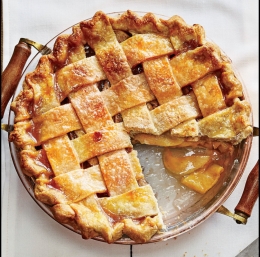 ■ Testo razdelimo na dva enaka dela, ki ju enakomerno razvaljamo. Pekač ali okrogel model za pito namažemo z maslom in potresemo z moko. V pekač/model položimo en del testa, ki ga obložimo z jabolčno oblogo. Drugi del testa lahko položimo na jabolka ali pa ga narežemo na rezance, ki jih po jabolkih razdelimo v obliki mreže.