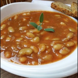 Pripravljen pasulj serviramo v globoke krožnike (jušne skodelice). Postrežemo ga s kruhom.