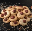 Iz ohlajenega testa oblikujemo kroglice velikosti oreha, sploščimo jih med dlanmi in polagamo na pekač, obložen s peki papirjem.