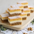 Na dno pekača damo najprej eno plast testa, sledi orehov nadev, nato skutin in na vrhu še ena plast testa.